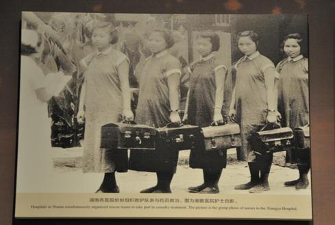 走进中共湘籍抗战群英展厅,可谓群星荟萃,任弼时赴山西指挥平型关战役,彭德怀与左权在太行山横刀立马,率八路军开辟华北战场及百团大战;贺龙、罗荣桓、萧克等人在敌后根据地与日寇浴血奋战;刘少奇、粟裕、黄克诚等人则率新四军与日军在长江中下游开展反复争夺。百团大战中,湖南醴陵人、八路军副参谋长左权将军在太行山壮烈殉国,年仅37岁。武汉失守后,湖南成为正面战场的主战场,国民党军队在湖南进行了长沙、常德、长衡以及湘西会战,抵御日军的进攻,前后进行了六次浴血会战。在这些会战中湘雅医院的医生、护士始终在前线进行战地救护,很多市民踊跃支前,三湘儿女在抗战中作出了重要贡献。听了讲解员的讲解,大家看到了抗战时期的艰难困苦。通过参观湖南抗日战争纪念馆的活动,让大家上了一堂深动的爱国主义教育课。