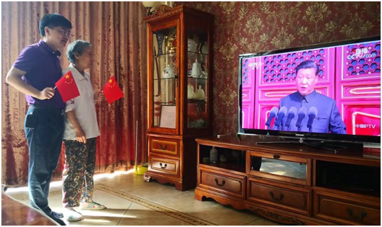全体党员通过电视、网络、广播、新媒体等方式收看、收听庆祝中华人民共和国成立70周年大会、阅兵式和群众游行等国庆盛典直播。党员们激发创意灵感、抒发爱国情怀,或与观看画面合影,或用文字致敬伟大祖国,表达出与祖国同庆的自豪,与时代同行的激动,肩负使命的光荣,以及为中国梦共同奋斗的决心!(tapplay 罗晔)