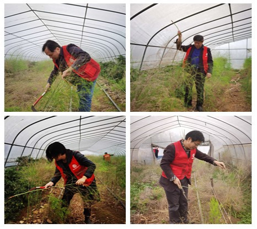 李建良家是芦笋种植专业户,子女都不在身边,缺乏劳动力,党员们就利用周末时间,走进田间地头,参加义务劳动,帮助李建良家做一些力所能及的事。活动中,党员志愿者们积极发扬不怕苦、不怕累、不怕脏的精神,拿起镰刀,扛起锄头,平坑填土,除杂草、清垃圾。