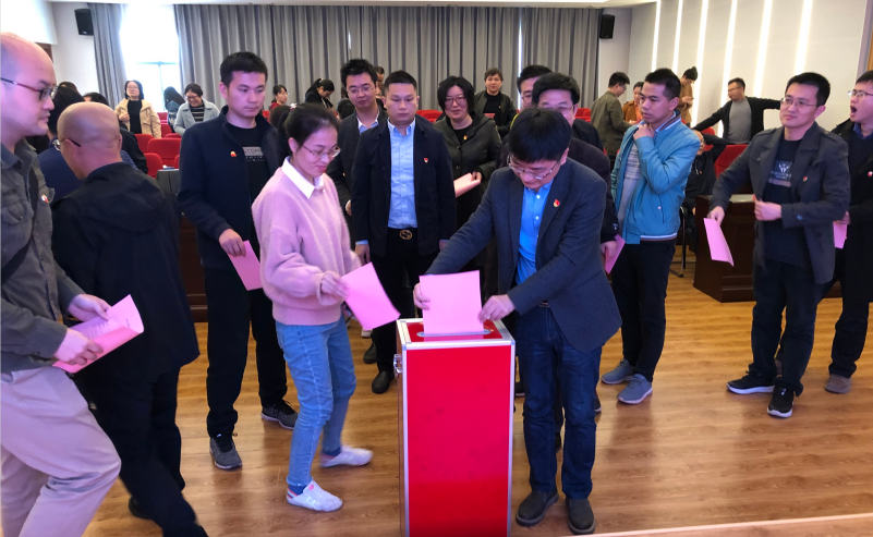 按照《tapplay章程》和《tapplay基层组织选举工作条例》,经过党员充分酝酿,会议采取无记名投票和差额选举的办法,选举产生了胡迎新、徐占军、龙丽、张威振、肖建勇、李雪、严伟为新一届委员会委员。随即,新一届支部委员会召开第一次会议,采用无记名投票和等额选举的方式,选举出胡迎新为党支部书记,徐占军为党支部副书记。胡迎新代表新一届设计院党支部领导班子作表态发言。