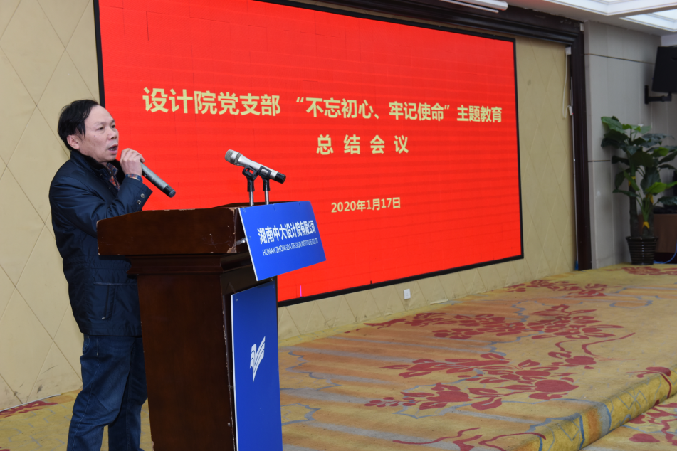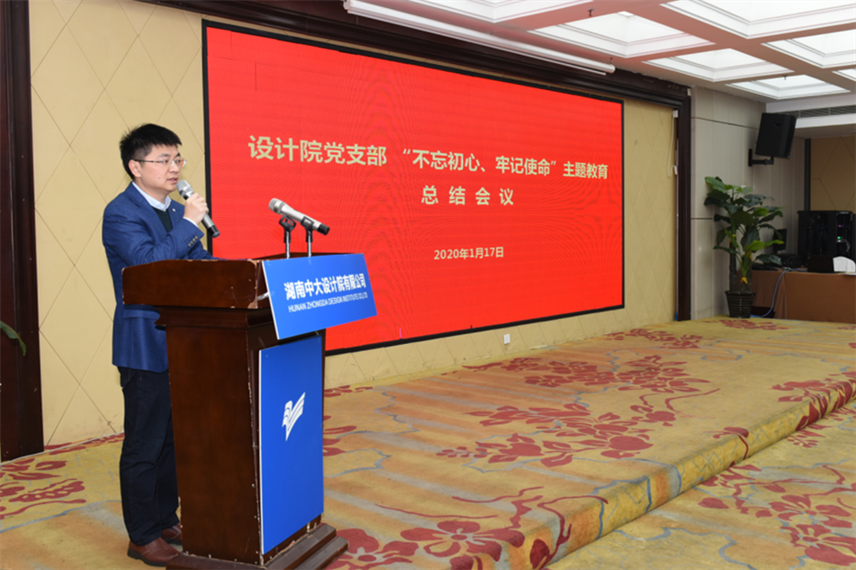 设计院党支部书记胡迎新对支部“不忘初心、牢记使命”主题教育的总体情况进行了回顾总结,对支部在主题教育中的主要工作内容、经验特色、重要启示、存在的不足进行了全面细致地梳理,并就如何进一步巩固、深化和提升主题教育成效提出工作要求。