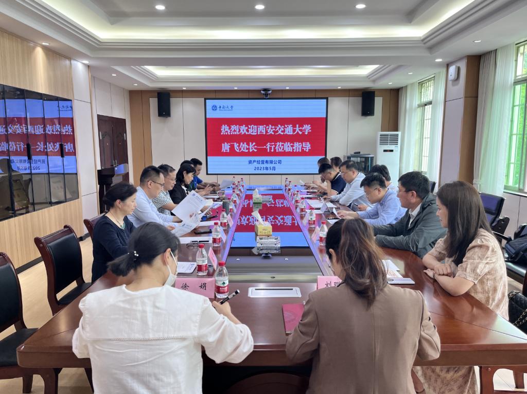 5月15日,西安交通大学国有资产管理处处长唐飞、政策法规办公室主任郭虎一行8人来学校调研学校所属企业和国有资产管理情况。公司董事长、总经理李家才接待了来访客人。