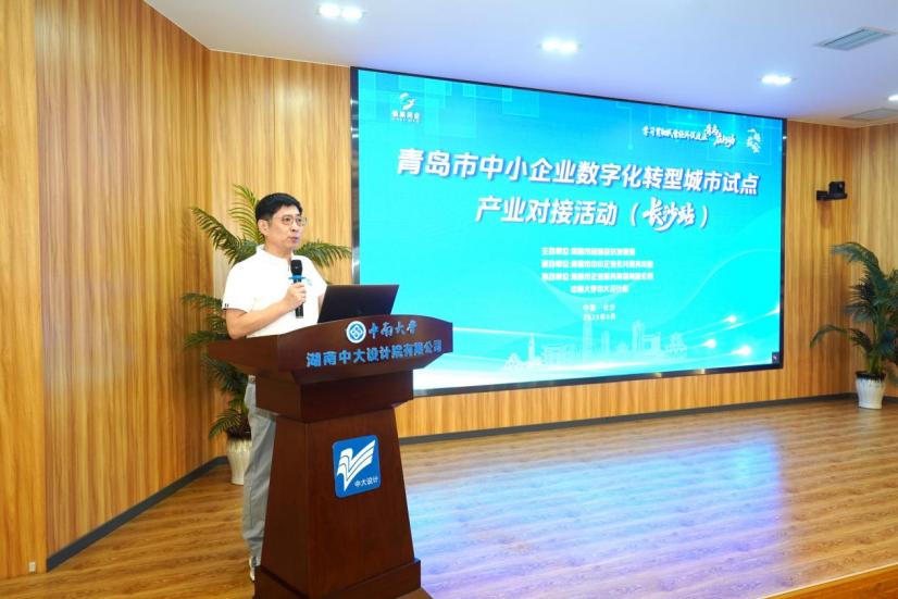 2025年9月9日上午,青岛市中小企业数字化转型城市试点产业对接活动(长沙站)启动仪式在中大设计院成功举行。本次活动以“探数字化绿色化转型路径,促青长科技协同发展”为主题,旨在推动青岛与长沙两地政府部门、高校及企业深入交流,搭建“产学研用”合作桥梁,助力企业数字化转型与高质量发展。
