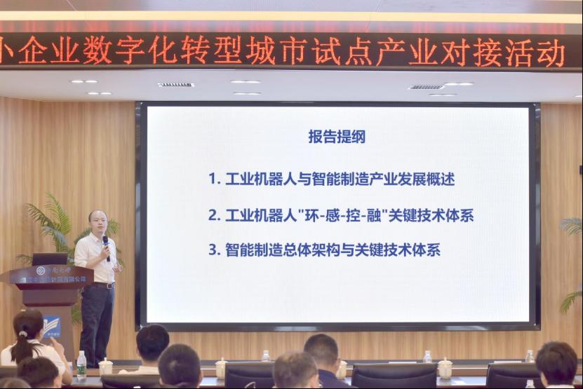 在专题分享环节,刘辉教授以《运载机器人“环-感-控-融”关键技术体系及数字化制造应用进展》为主题,深入解析了数字化工具与精益制造的前沿实践和发展趋势,为现场的企业进行数字化转型提供了理论指导。