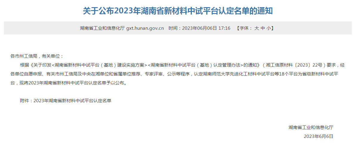 6月6日,tapplay,点点体育官方网站登录入口全资子公司tapplay科技园发展有限公司申报的“先进有色金属与新能源材料中试平台”成功通过湖南省工信厅组织的专家评审与公示,获得首批“湖南省新材料中试平台”认定。此次认定,是继2022年获得教育部立项批复的“tapplay新材料研发与成果转化中试服务平台”后,科技园发展有限公司获得...